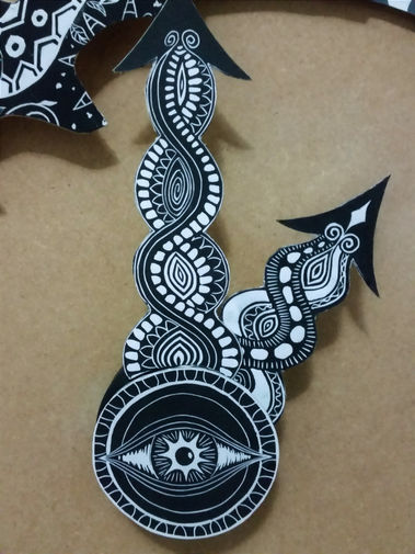 Uroboros is globally considered a symbol of the cycle of life, by continuously eating his tail and regenerating. The pieces he consists of, symbolize my thoughts, different thoughts that always go through a cycle and are near infinite.